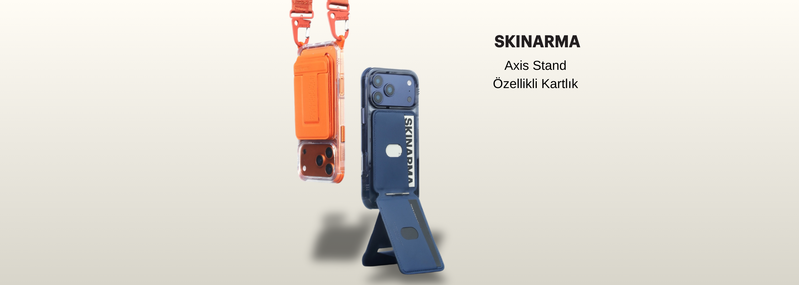 Skinarma Axis Serisi Foldable Stand Özellikli Deri Tasarımlı Kartlık Turuncu