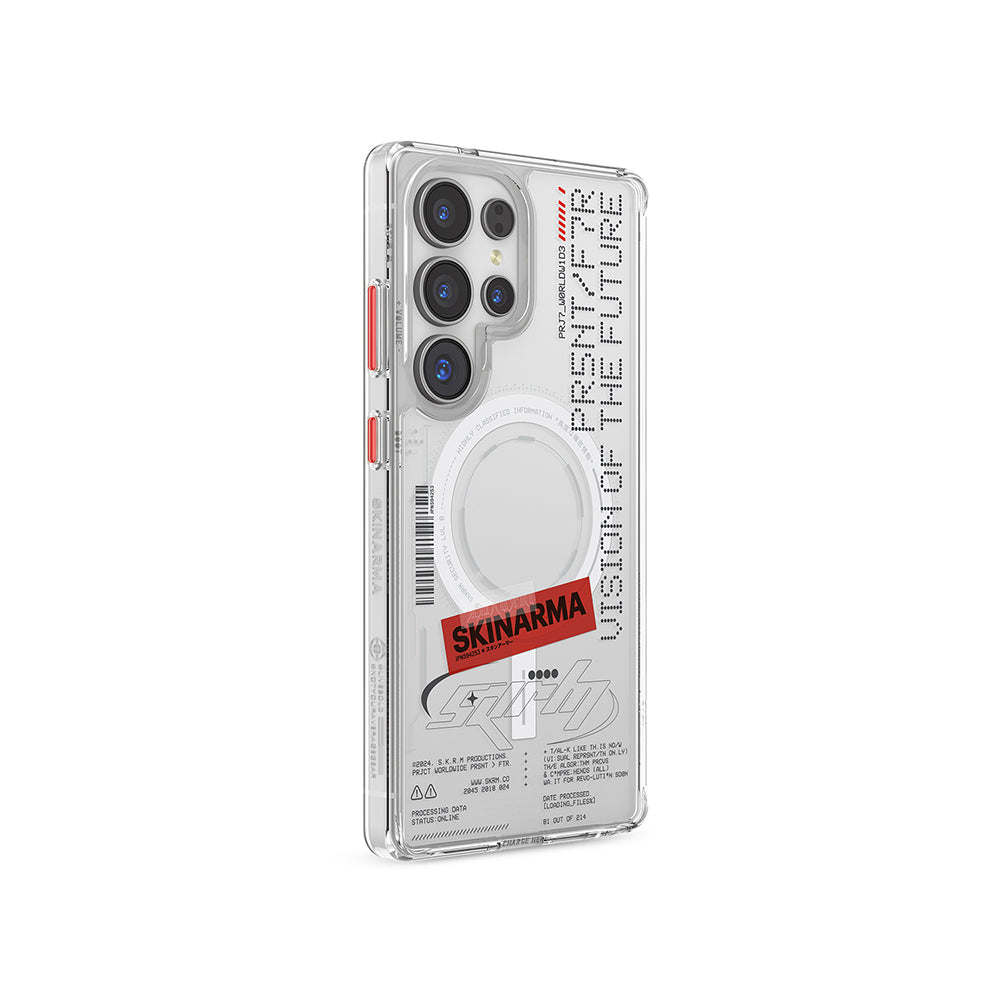 Galaxy S25 Ultra Kılıf Skinarma Magsafe Şarj Özellikli Yazı Desenli Airbag Tasarımlı Orion Kapak Şeffaf