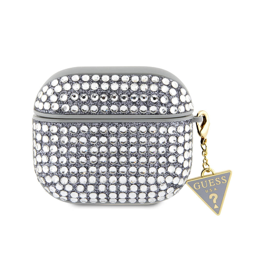 Apple Airpods 3. Nesil Kılıf Guess Orjinal Lisanslı Parıltılı Taş Kaplamalı Üçgen Logo Süs Zincirli Kapak Gold