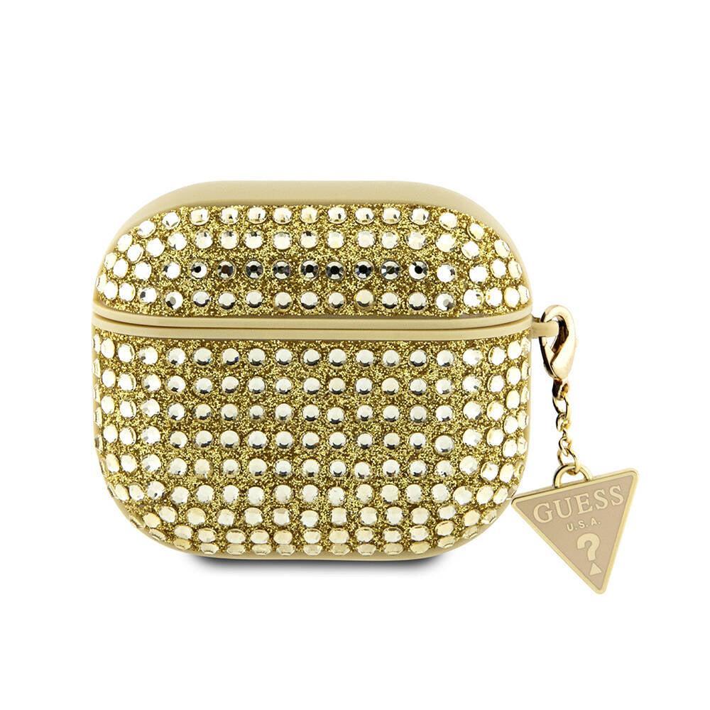 Apple Airpods 3. Nesil Kılıf Guess Orjinal Lisanslı Parıltılı Taş Kaplamalı Üçgen Logo Süs Zincirli Kapak Pembe