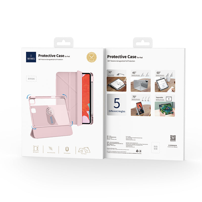 iPad Pro 11 2024 Wiwu 360° Dönebilen Standlı Magnetik Koruyucu Tablet Kılıfı Pembe