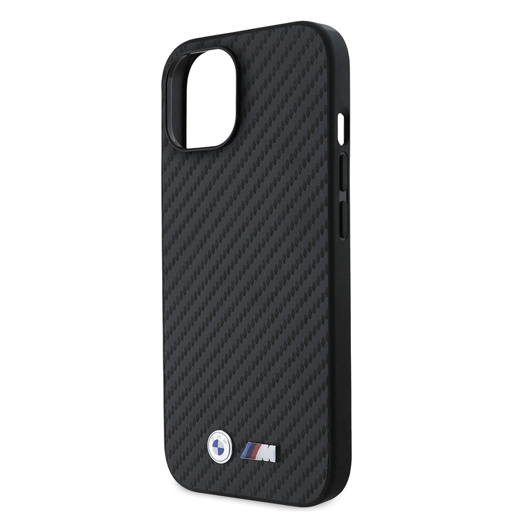 Apple iPhone 14 Kılıf BMW Orjinal Lisanslı Karbon Fiber Tasarımlı ve Metal Logolu PU Deri Kapak Siyah