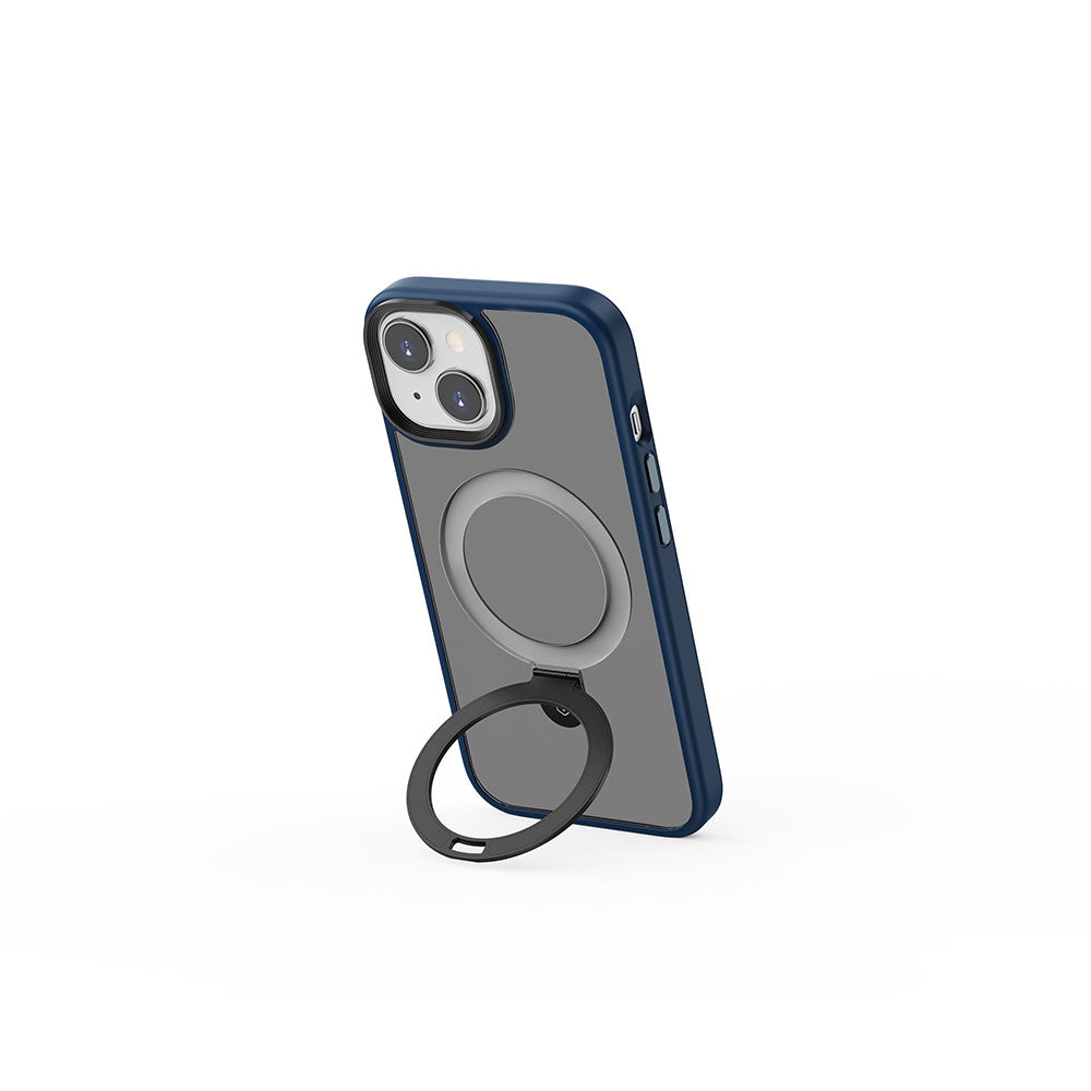 iPhone 15 Plus Kılıf Wiwu ZMM-010 Magsafe Şarj Özellikli Mat Arka Yüzey Standlı Kılıf Mavi