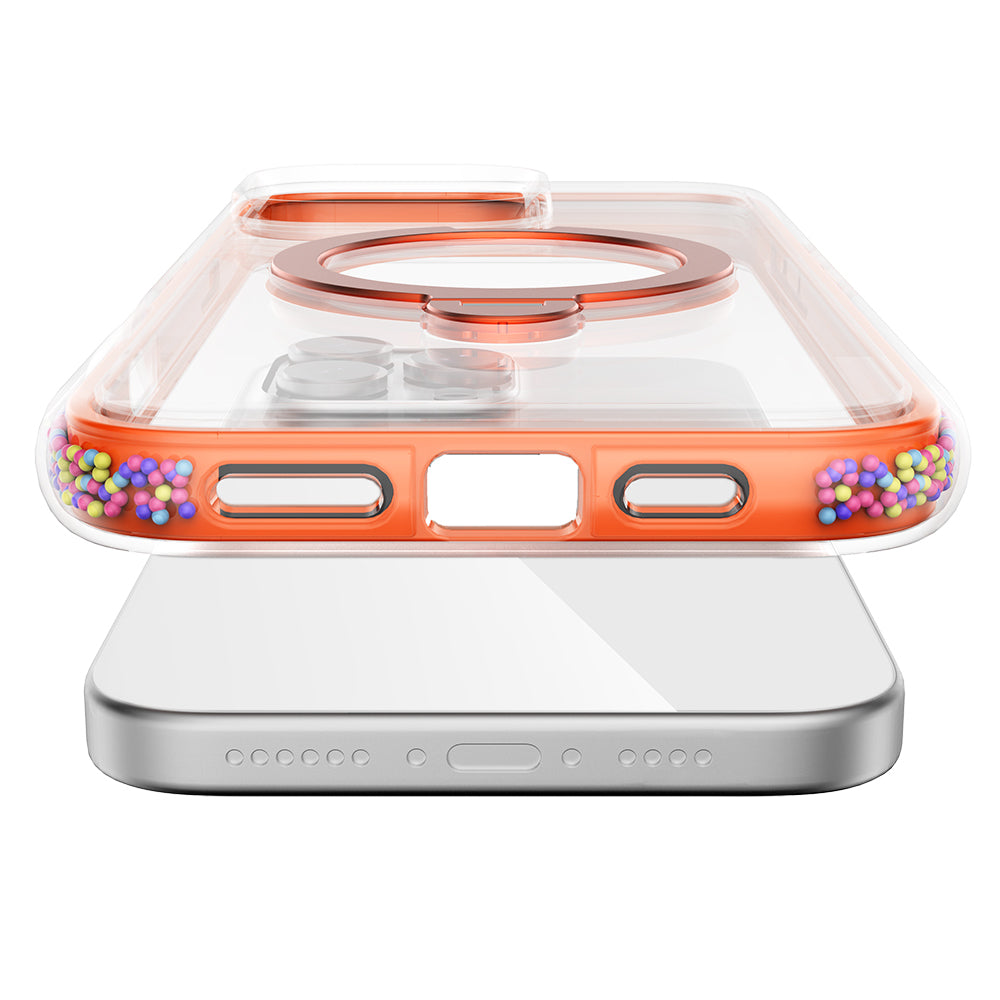iPhone 16 Pro Kılıf Magsafe Şarj Özellikli Raptic AirJoy Serisi Boncuk Tasarımlı 360 Derece Dönebilen Standlı Kılıf Siyah-Gri
