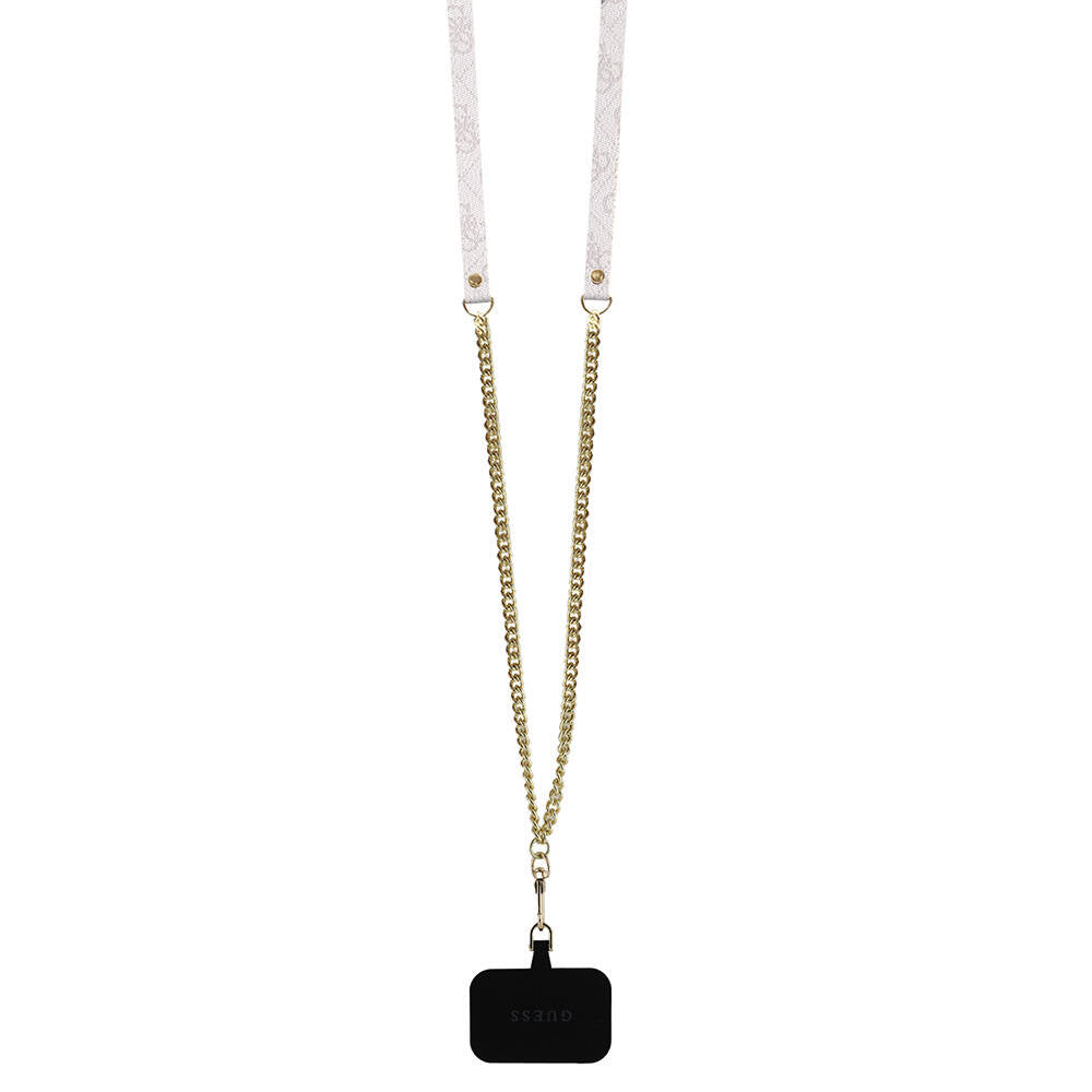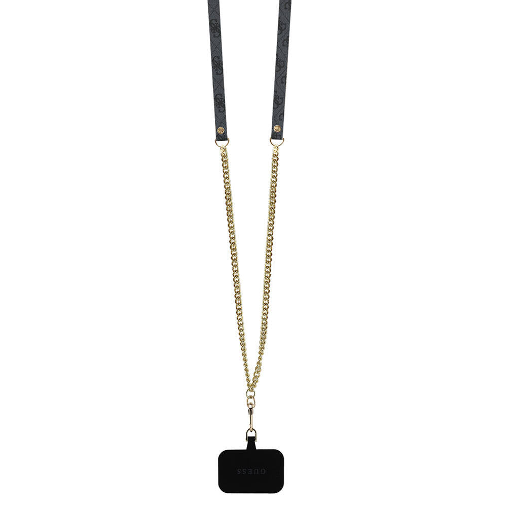 Apple iPhone 16 Pro Max Kılıf Guess Orjinal Lisanslı PU Deri Taşlı Metal Üçgen Logolu Çapraz Vücut Askılı 4G Desenli Kapak Siyah