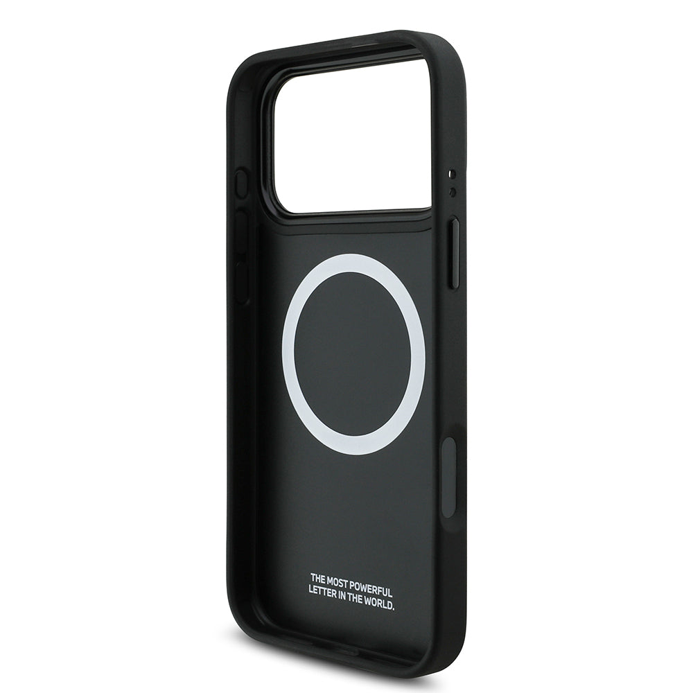 Apple iPhone 17 Pro Max Kılıf BMW Orjinal Lisanslı M-safe Şarj Özellikli Deri Arka Yüzey Metal Logolu Delikli Şerit Tasarımlı Kapak Lacivert