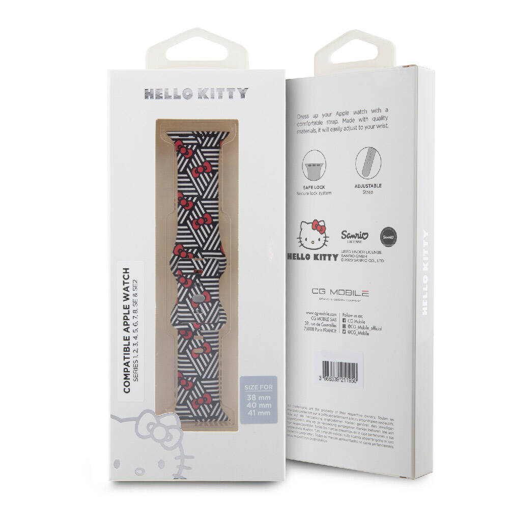 Bu muhteşem Apple Watch kordonu, Hello Kitty'nin benzersizliğini ve çekiciliğini mükemmel bir şekilde sergileyen sevimli grafiklerle dekore edilmiştir. Çok sayıda siyah beyaz çizginin arka planına karşı büyüleyici fiyonklar, dikkat çeken olağanüstü bir kompozisyon oluşturuyor ve bu kayışla donatılmış bir Apple Watch'u kıskanılacak bir aksesuar haline getiriyor.