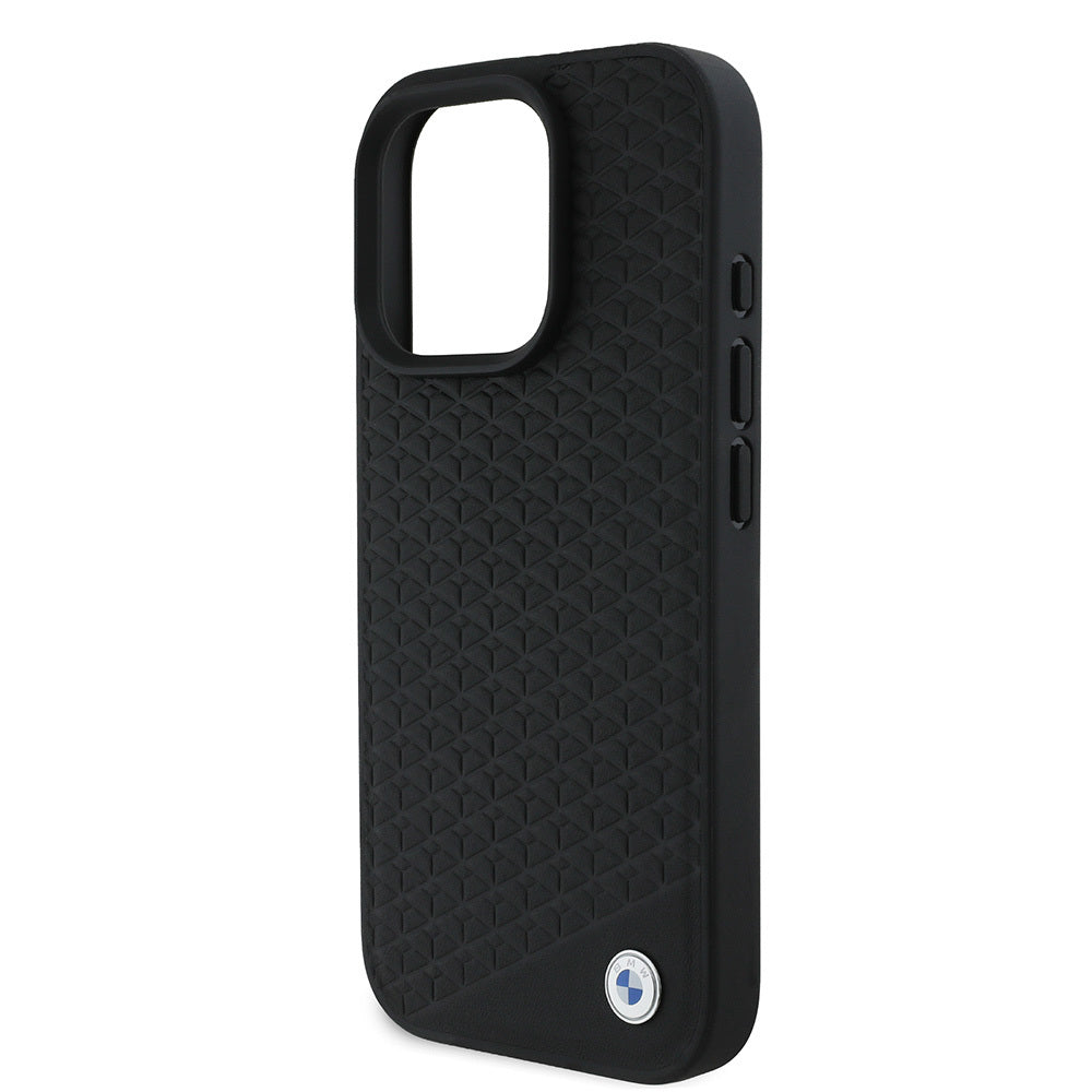 BMW iPhone 16 Pro Max Orjinal Lisanslı Magsafe Şarj Özellikli Metal Logolu Dokulu Diamond Deri Kılıf