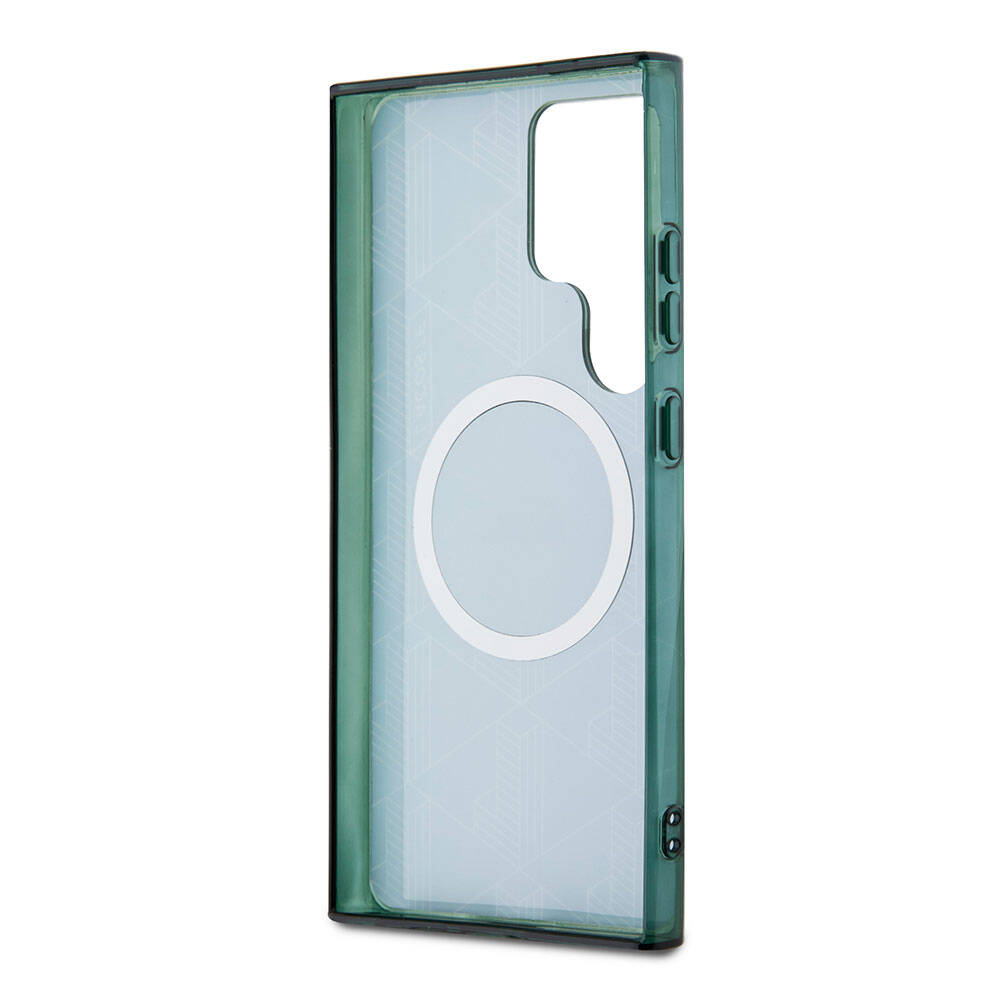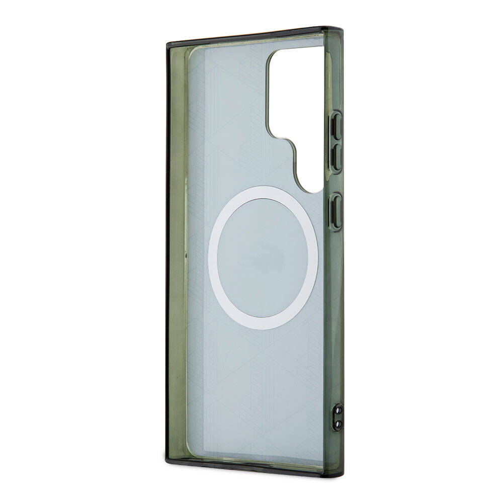Galaxy S24 Ultra Kılıf Lacoste Orjinal Lisanslı Magsafe Şarj Özellikli Çift Katmanlı Timsah Logolu Blend Monogram Kılıf Siyah
