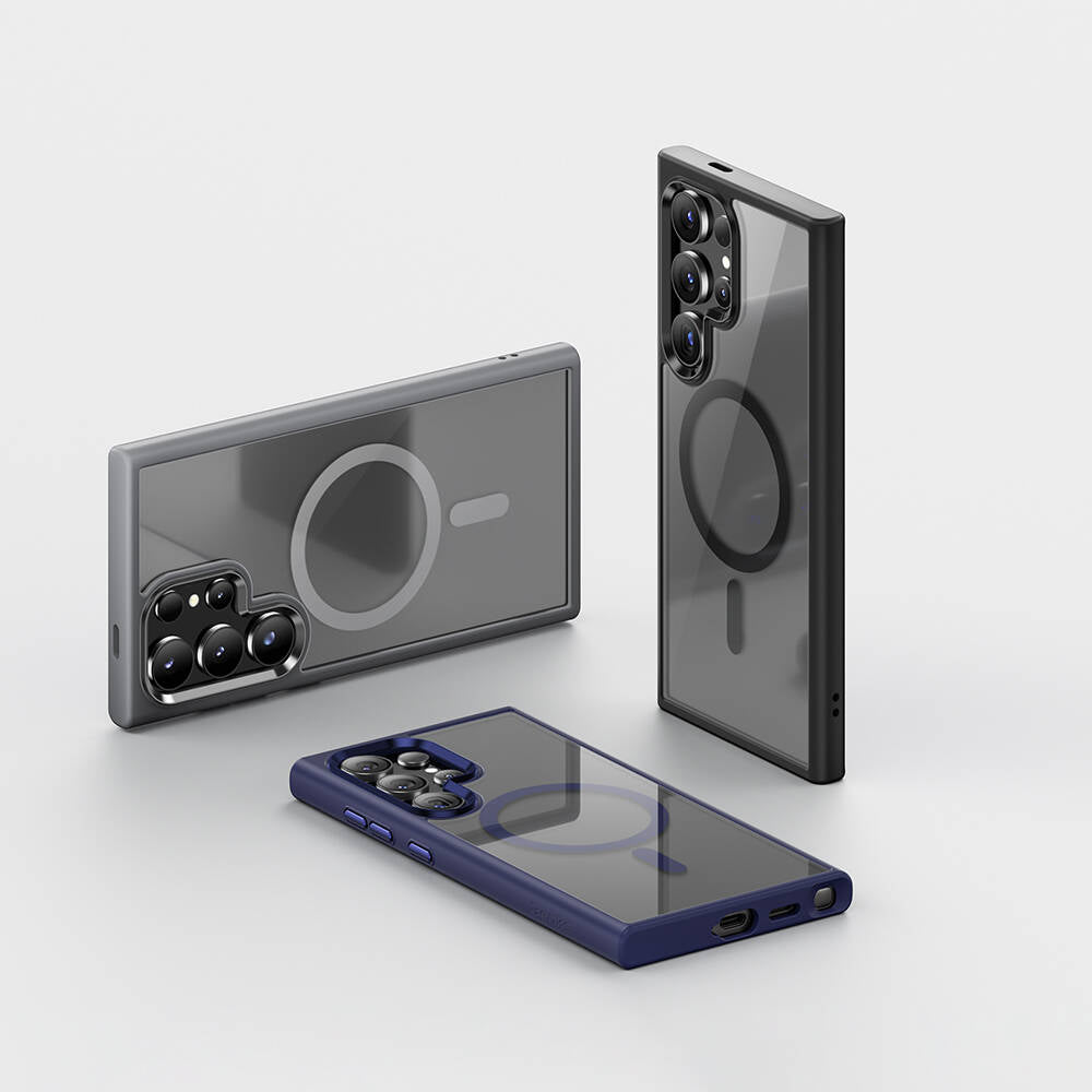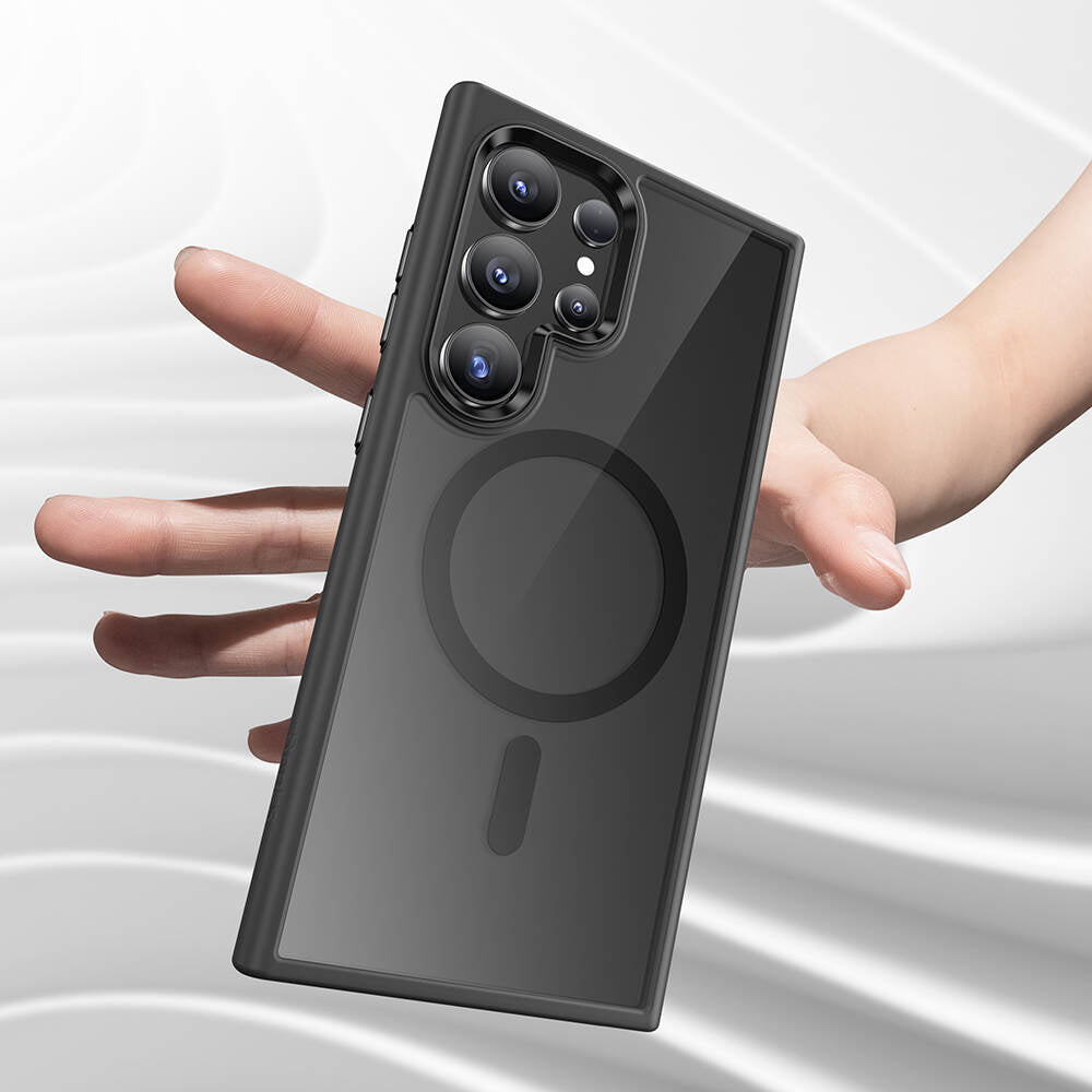 Galaxy S24 Ultra Kılıf Magsafe Şarj Özellikli Şeffaf Arka Yüzey Benks MagClap TPU Çerçeve Kılıf Siyah
