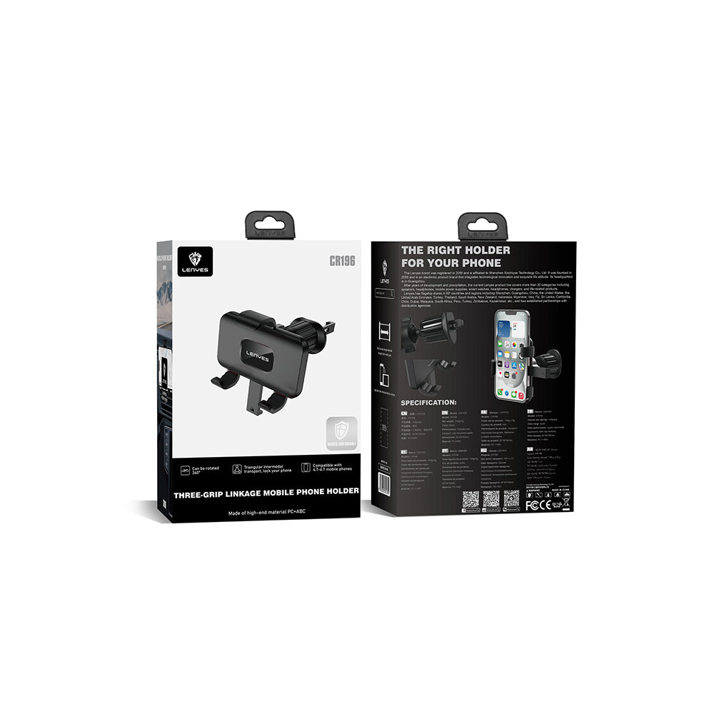 Lenyes CR196 360° Dönebilen Havalandırma Tasarım Araç Telefon Tutucu Siyah