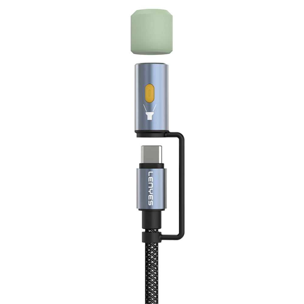 Lenyes LC111 Çoklu Şarj Kablolu Fener Ve Çakmaklık Özellikli 4in1 Kablo 60W 1M Gri