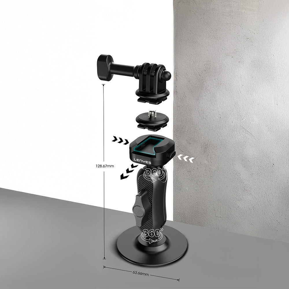 Lenyes LCT104 Teleskopik Vantuzlu Tasarım Aksiyon Kamera Tutucu Siyah