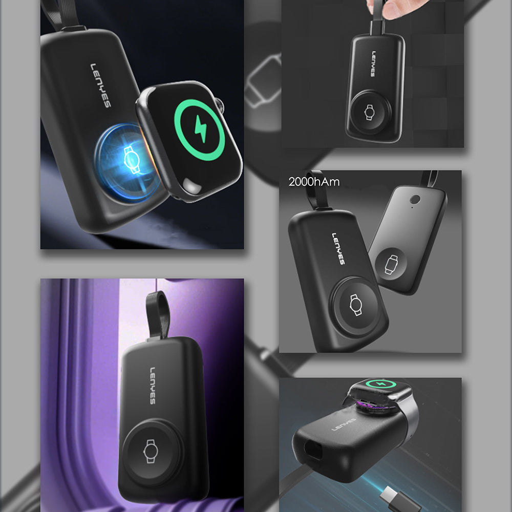 Lenyes PX0001D Akıllı Saat Kablosuz Şarj Özellikli Taşınabilir Type-C Kablolu Powerbank 2000mAh 2W Siyah