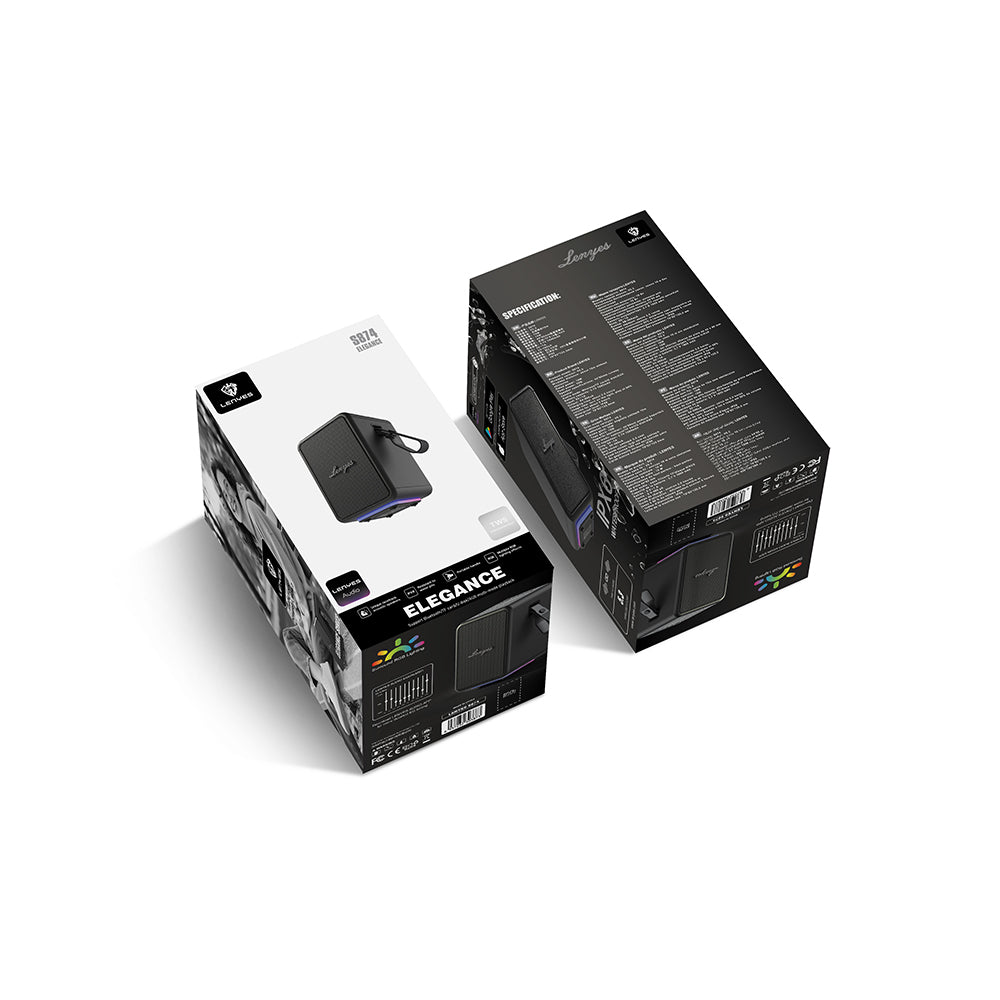Lenyes S874 Su Geçirmez Özellikli RGB Işıklı Askılı Taşınabilir TWS Bluetooth Hoparlör v5.3 Siyah